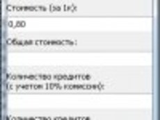 Cost of Credits 1.0.1 - Программа предназначенная для продавцов кредитов в системе WaspAce.Достаточно ввести сумму и количество кредитов и программа автоматически посчитает стоимость кредитов, так же покажет сколько потребуется кредитов для генерации карты (также можно вводить количество кредитов в поле «Количество кредитов (с учетом комиссии)»)