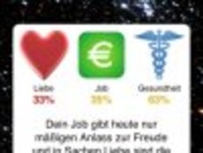 Dein Horoskop free 1.3 для iPhone / iPad - Благодаря этому приложению, вам больше не придется искать ежедневный гороскоп в газетах. Все предсказания будут доступны на вашем мобильном устройстве. Вы сможете ознакомиться с ними или найти информацию о своих друзьях в любое время и в любом месте. Бесплатная версия приложения, содержит рекламу.