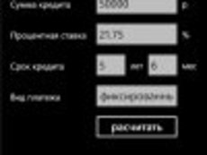 Кредитный калькулятор 1.0.0.2 для Windows Phone - С помощью кредитного калькулятора, вы можете рассчитать параметры кредита, сравнить разные условия кредита и выбрать самые оптимальные условия кредита.