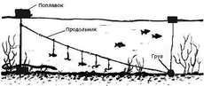 Другие названия: тюколка, дрыголка. Тип крючковой снасти для ловли, в первую очередь, хищной рыбы. Состоит из прочной бечёвки и прикреплённых к ней коротких поводков с крючками, на которые насаживается приманка. Ставится поперёк течения реки. Оба конца перемёта привязывают к сторожкам, состоящим из бечёвки, к нижнему концу которой прикреплён груз, а к верхней - поплавок. Можно также натягивать перемёт и между двумя вбитыми в дно колами, или использовать любые другие элементы. Главное - чтобы перемёт оставался на одном месте и был заглублен в воду.
